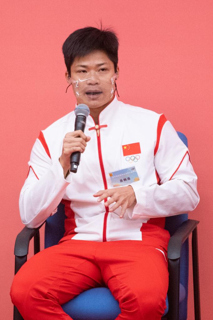 人气颇高的“亚洲飞人”苏炳添则详述了自己的经历和感悟。他说:“由于伤病等各种原因,前些年我曾一度处在退役状态,人生面临重大取舍。最终我就是舍不得离开这个跑道。在国家队的支持下,自己又重新一步步回到国际赛场上。虽然已经有了家庭和其他工作,但我始终将短跑事业放在第一位,近一年里大部分时间都放在训练上。每次见到孩子都是在手机上。我觉得自己的选择没有错,完成了自己心中的梦想。包括亚洲、中国都想在奥运会上得到这个成绩,今天终于做到了。”