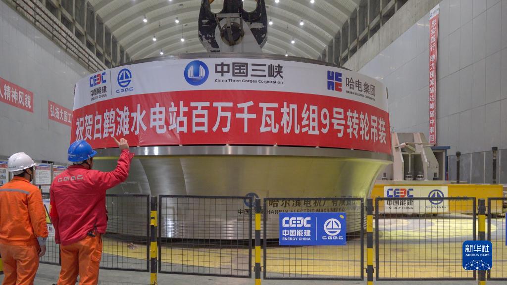 12月19日,白鹤滩水电站最后一台机组——9号水轮发电机组转轮顺利完成吊装。新华社发(赵健 摄)