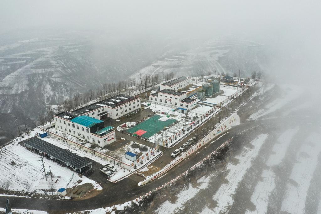 这是12月10日拍摄的长庆油田南梁采油作业区梁四转中心站。(无人机照片 新华社记者马希平 摄)