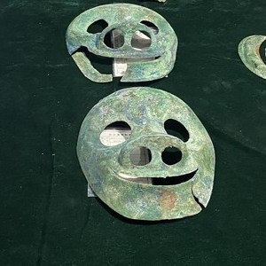 琉璃河遗址出土的青铜面具等文物。新华社记者 罗鑫 摄