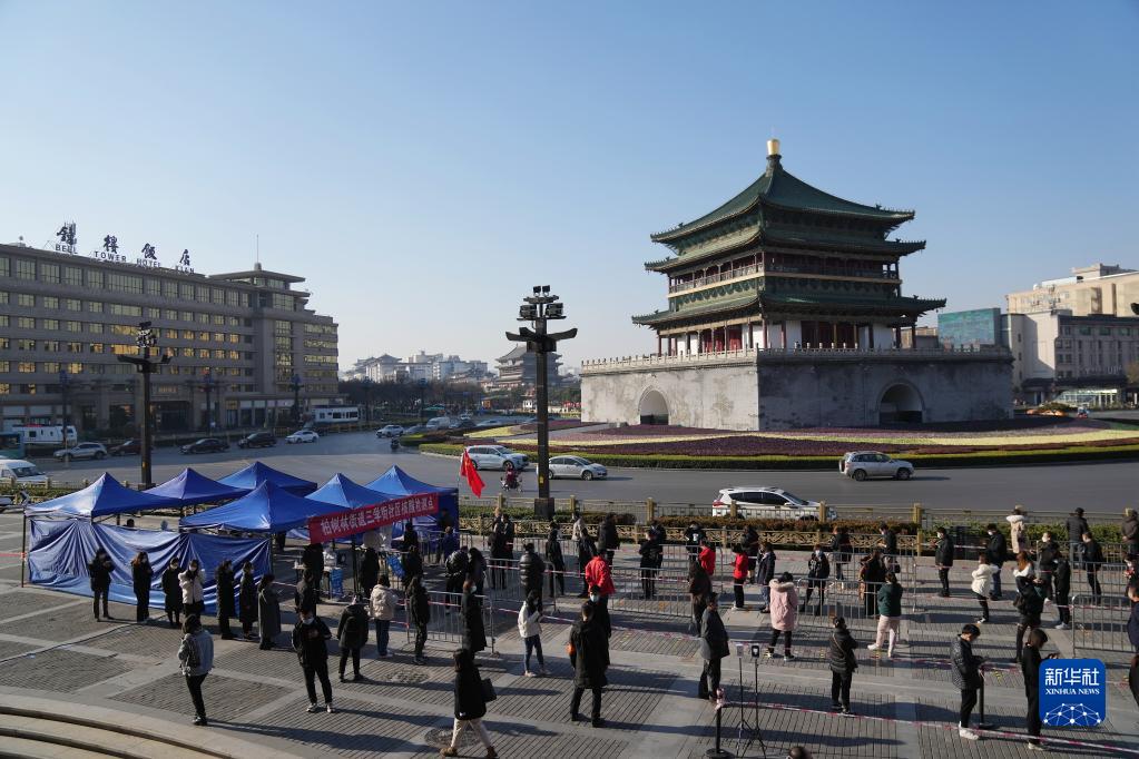 12月21日,市民在西安市柏树林街道三学街社区核酸检测点排队等待核酸检测。