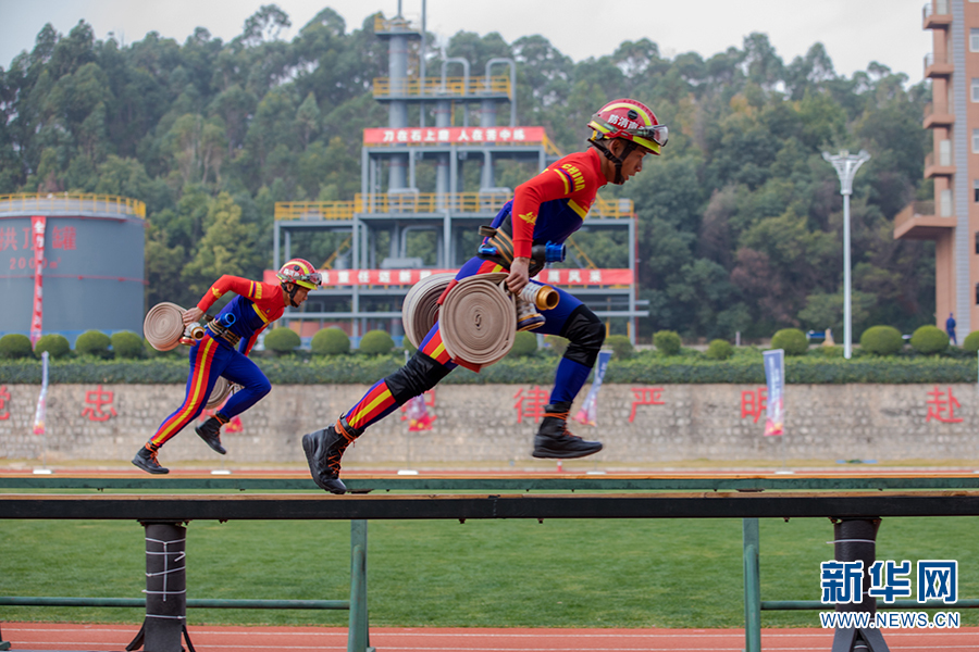 百米消防障碍科目竞赛(12月17日摄)。新华网发(云南省消防救援总队新闻宣传处供图)