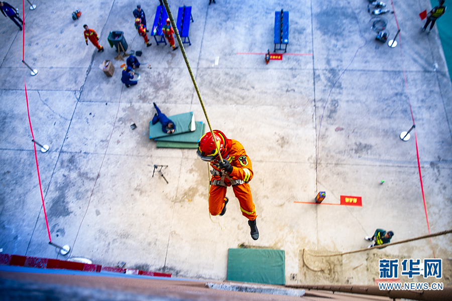 楼层火灾救人操竞赛(12月19日摄)。新华网发(云南省消防救援总队新闻宣传处供图)