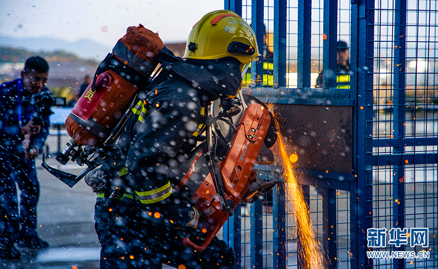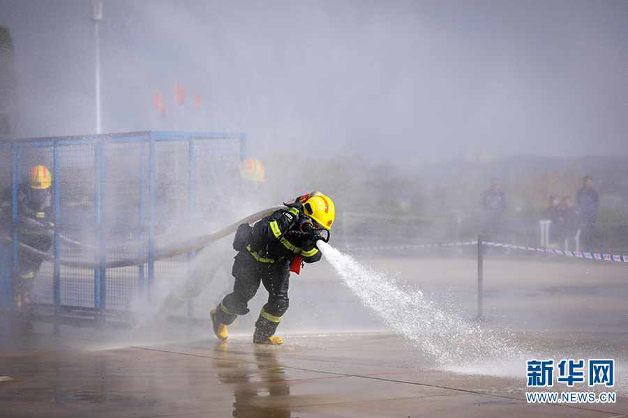 枪炮协同灭火操竞赛(12月19日摄)。新华网发(云南省消防救援总队新闻宣传处供图)