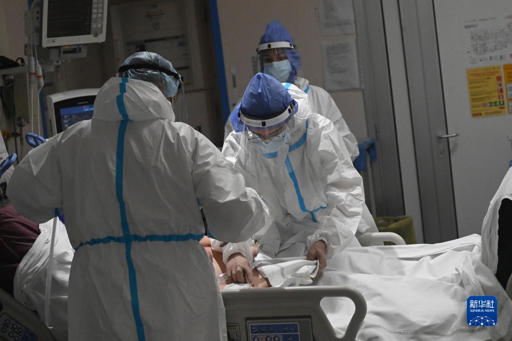 医务人员在意大利博洛尼亚一家医院的新冠隔离区对患者进行治疗(2021年12月3日)。新华社发(贾尼·斯基基摄)
