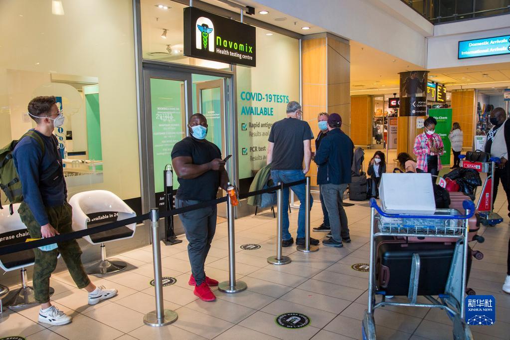 旅客在南非开普敦国际机场等待接受新冠病毒检测(2021年11月29日摄)。为防范新冠变异病毒奥密克戎毒株传播,多国对南非等非洲国家的航班和旅客实施入境限制,并升级防控措施。新华社发(弗克摄)