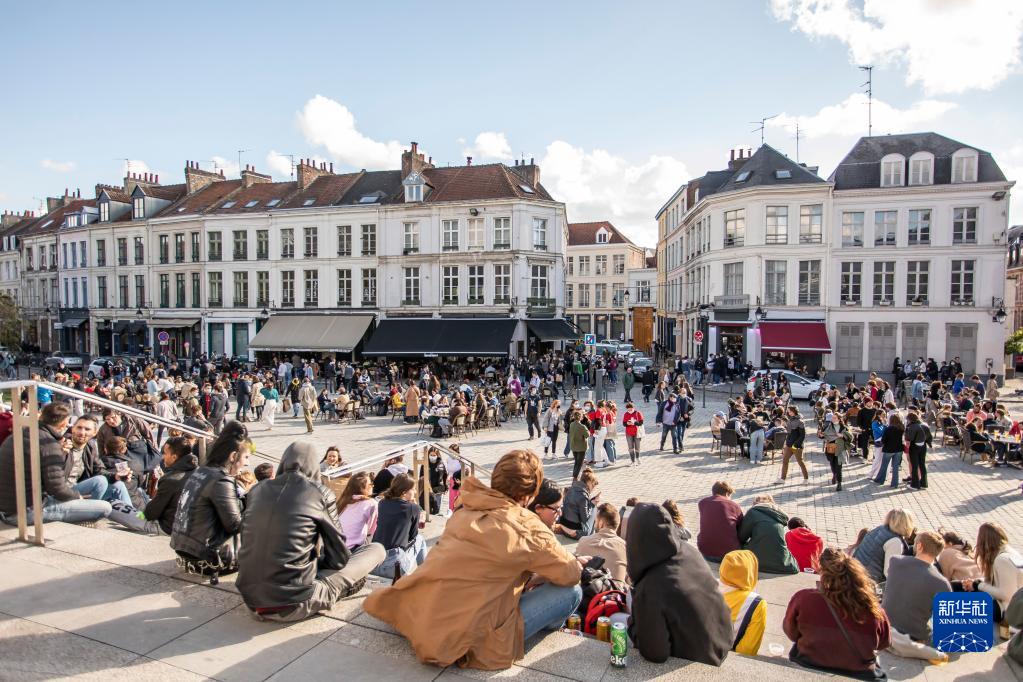 人们在法国里尔市中心休闲(2021年5月19日摄)。新华社发(塞巴斯蒂安·库尔吉摄)