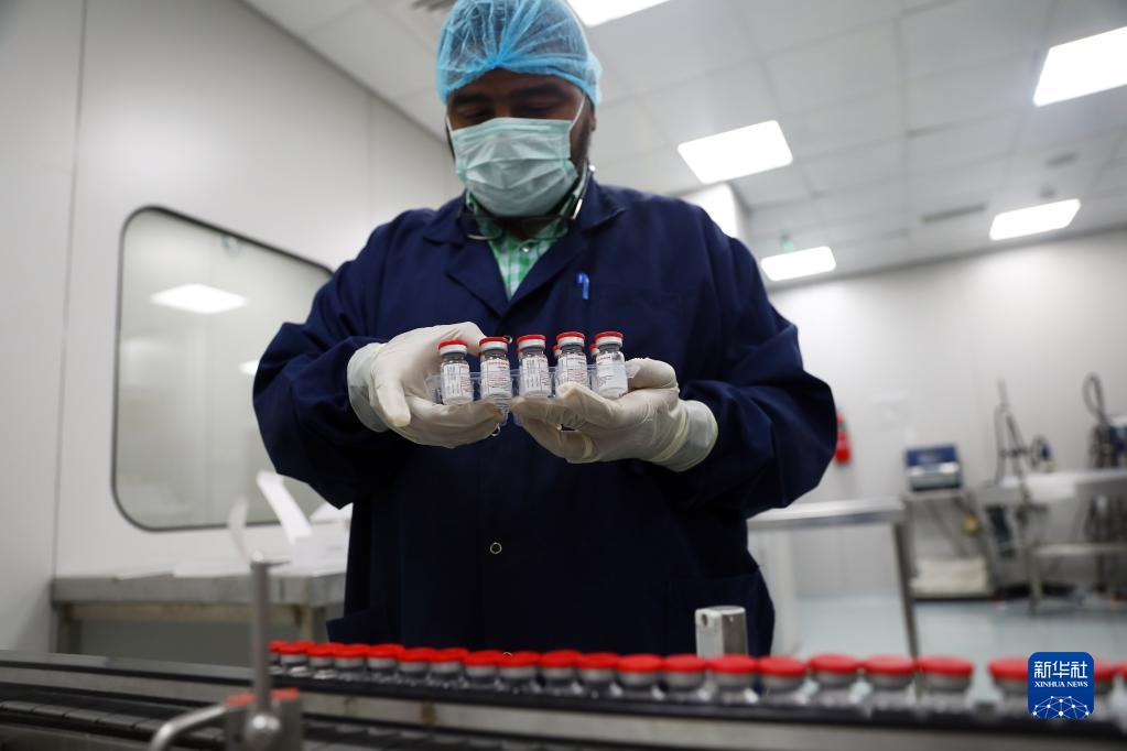 在埃及吉萨的埃及生物制品与疫苗公司疫苗生产厂,工作人员对贴标的新冠疫苗进行装盒前准备(2021年9月6日)。新华社发(艾哈迈德·戈马摄)