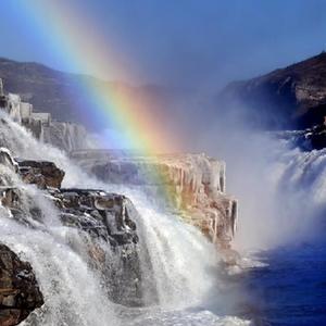 近日,随着气温骤降,黄河壶口瀑布呈现出别样奇观:飞溅的浪花,在两岸崖壁之上凝固成巨大冰瀑,点缀着一条条银装素裹的冰柱,玲珑剔透,错落有致;激起的水雾,在阳光的映射下,彩虹横亘其间,宛如一幅幅画卷。