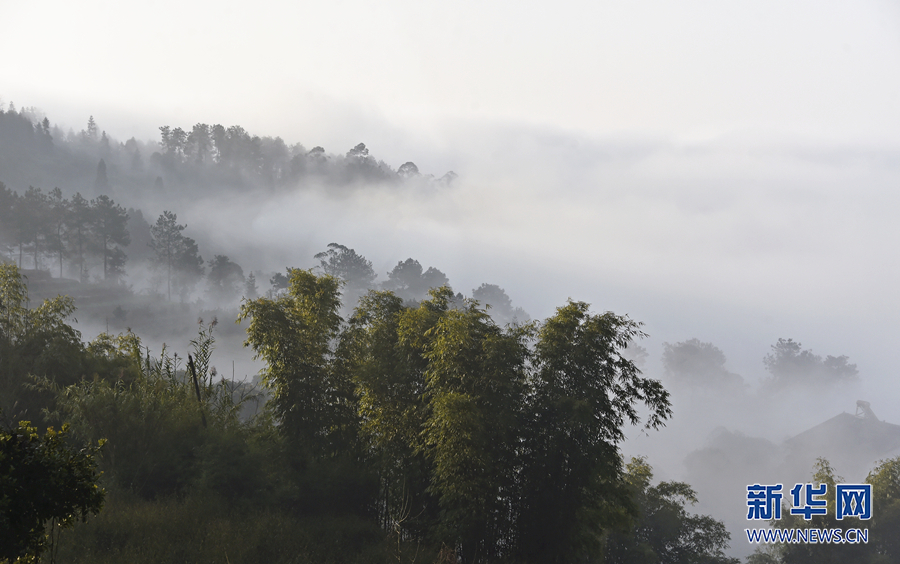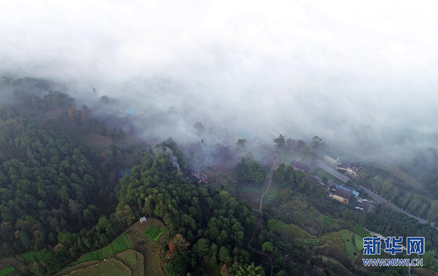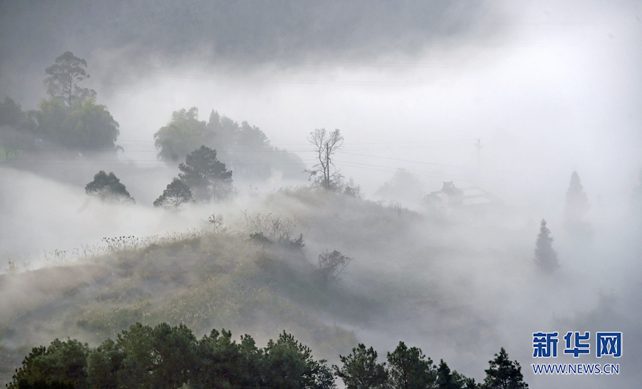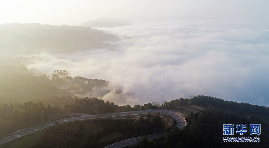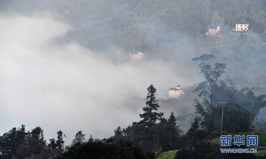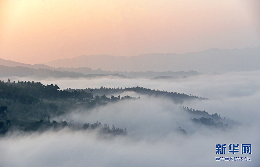 冬至时节,重庆涪陵区雨台山薄雾映朝霞,云海在山野翻腾,一幅乡村水墨画卷徐徐铺开。新华网发(黄河 摄)