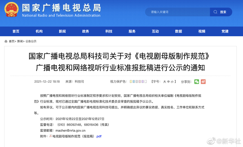 国家广播电视总局22日对《电视剧母版制作规范》广播电视和网络视听行业标准报批稿进行公示。内容指出,演职人员在电视剧的署名方式、顺序、位置等由聘用合同约定,制片人应在与演职人员签署聘用合同时就署名问题进行沟通和约定,规避争排位等署名纠纷的发生。(记者 王鹏)