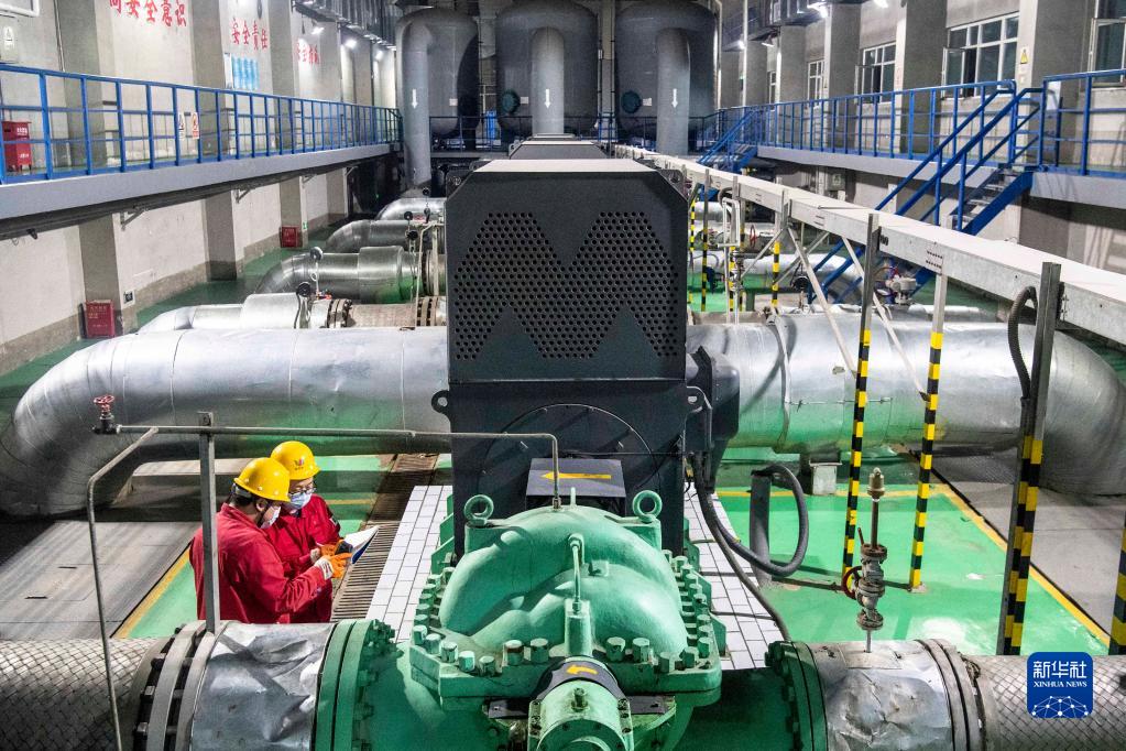 12月22日凌晨4时7分,乌鲁木齐市燃气供热有限公司工作人员在巡视设备运行状况。