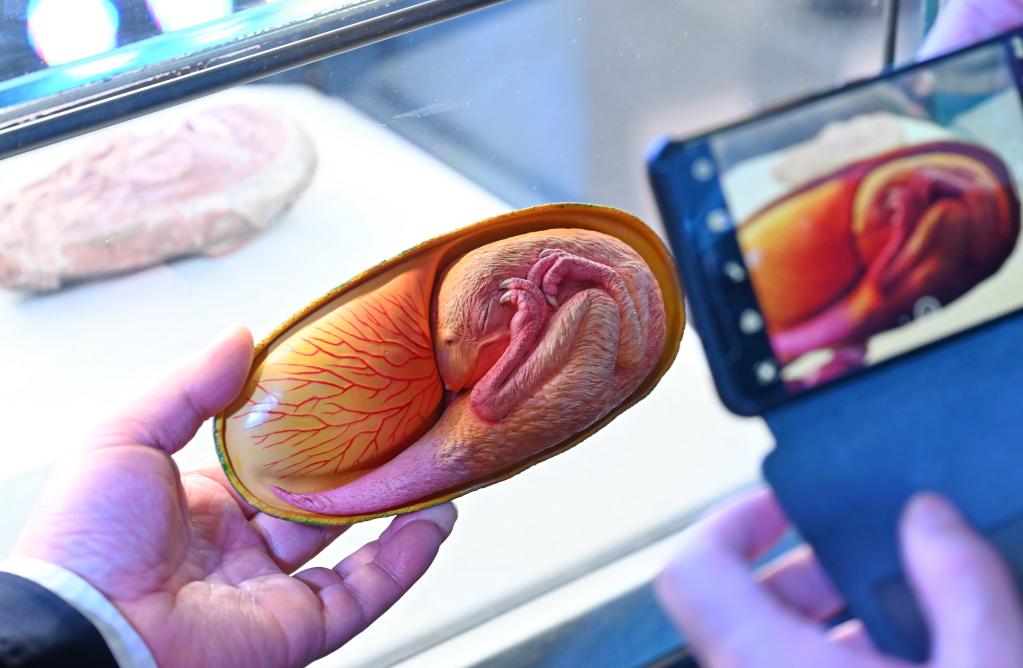 12月22日,参观者在福建省科技馆拍摄恐龙胚胎化石模型。新华社记者 林善传 摄