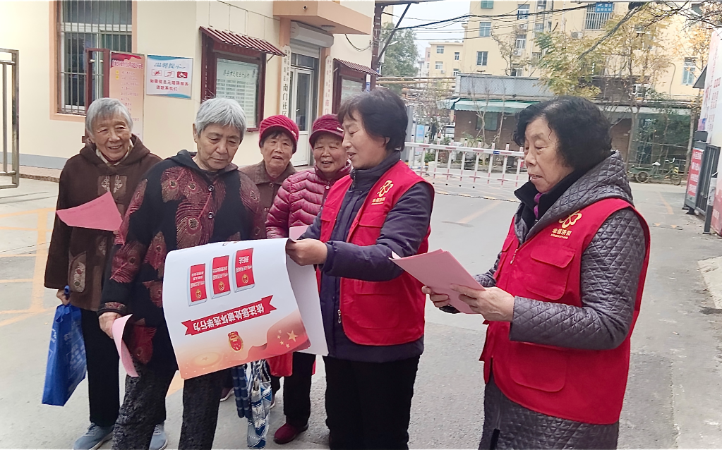 11月29日,山东省济宁市任城区济阳街道楼长给居民宣传人大换届选举有关知识。(新华社发)