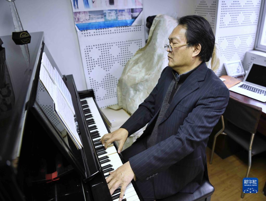2021年12月14日,在四川音乐学院琴房,敖昌群在创作音乐作品。新华社记者 刘坤 摄