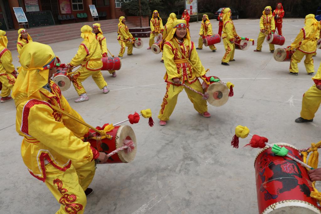 如今,王官营小学的学生们每周都有一节兰州太平鼓传习课,学校会定期邀请专家学者和民间艺人走进课堂。此外,体艺老师会将这些传统艺术改编成适合小学生学习传承的表演形式。