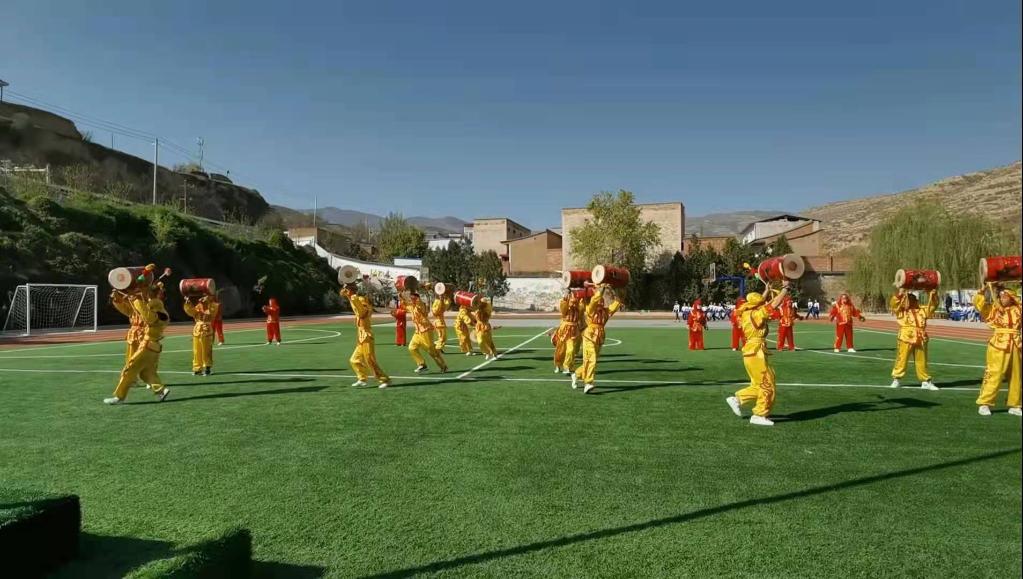 兰州市七里河区王官营小学的孩子们正在练习打兰州太平鼓。(图片来源:兰州市七里河区王官营小学)