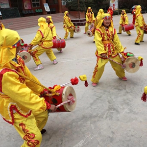 下午4点,下课铃声一响,王官营小学的孩子们就迫不及待地奔向操场。大家迅速排好队,左手持鼓,右手执鞭,伴随体艺老师有节奏的哨子声,打起太平鼓。