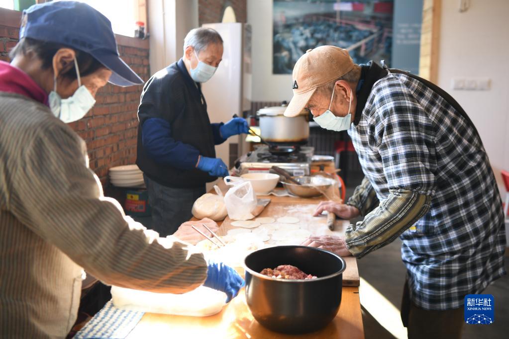 12月22日,马利民(右)、余国基(中)和李厚君在宝南饭店制作手工水饺和蛋饺。新华社记者 薛宇舸 摄