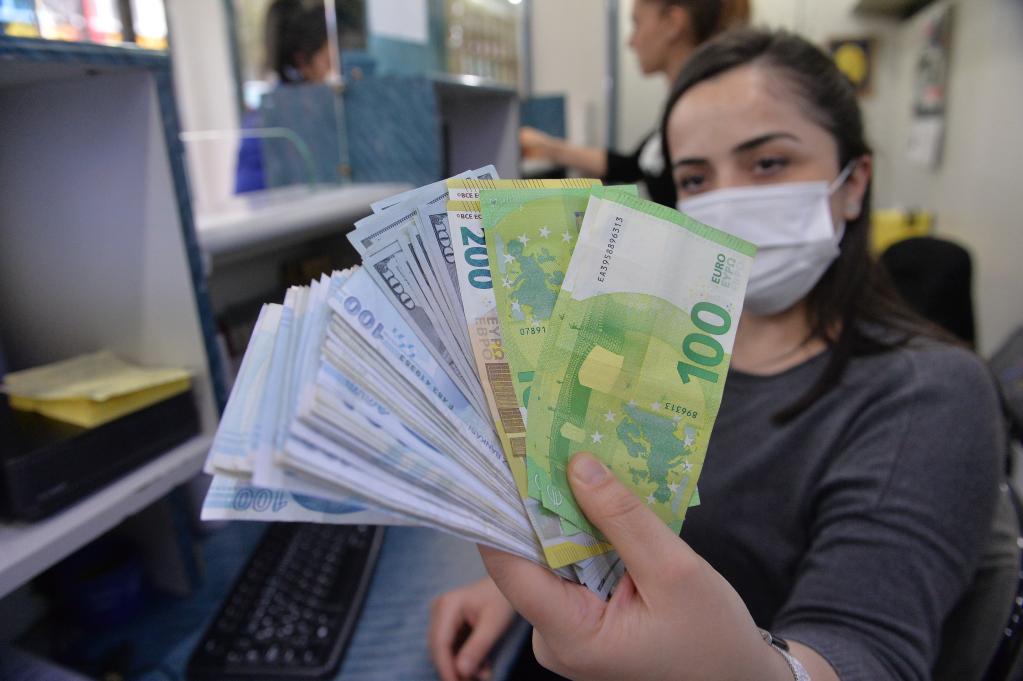 12月16日,一名女子在土耳其安卡拉一个货币兑换点展示货币。(新华社发,穆斯塔法·卡亚 摄)