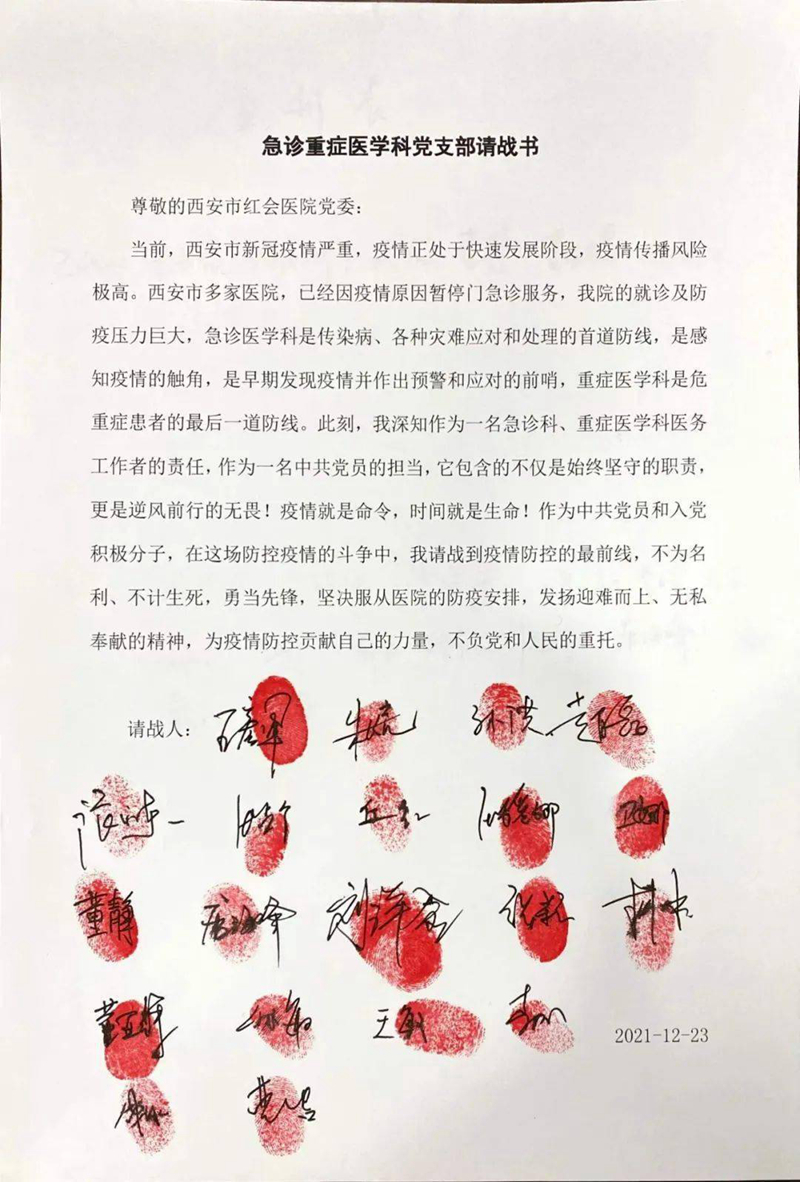 西安市第九医院医护人员“请战”出征
