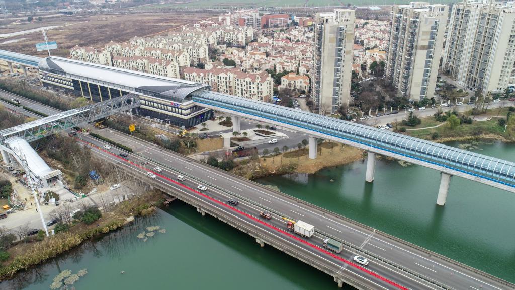 12月26日拍摄的武汉轨道交通16号线桂子湖站(无人机照片)。新华社发(伍志尊摄)