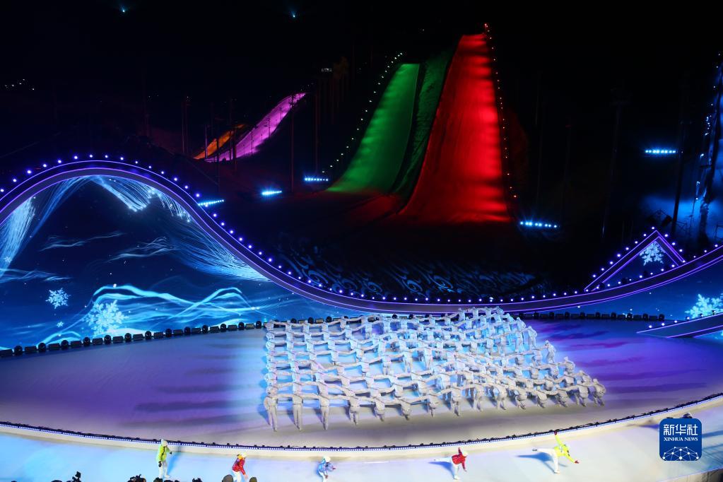 本届冰雪运动会开幕式以“一起上冰雪,一起迎冬奥,一起向未来”为主题。开幕式表演依托涞源国家跳台滑雪训练科研基地的空间条件,以跳台为主体背景和表演展示核心,在传统舞台上叠加冰面舞台区域,打造出了具有震撼力、沉浸式的冰雪实景演出效果,营造出喜迎冰雪盛会、助力北京冬奥的浓厚氛围。