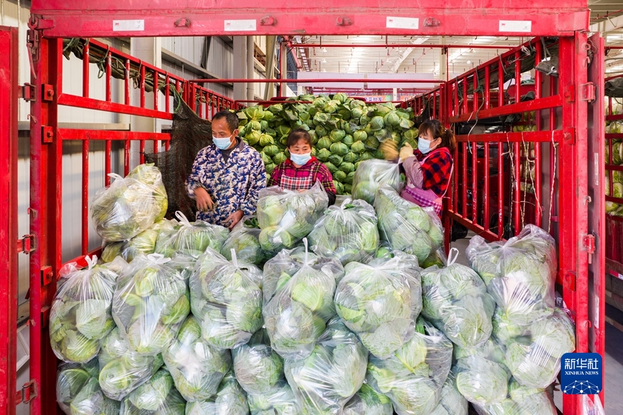 12月2日,在常德国际农产品交易中心的交易大厅,工作人员在整理蔬菜。新华社记者 陈思汗 摄