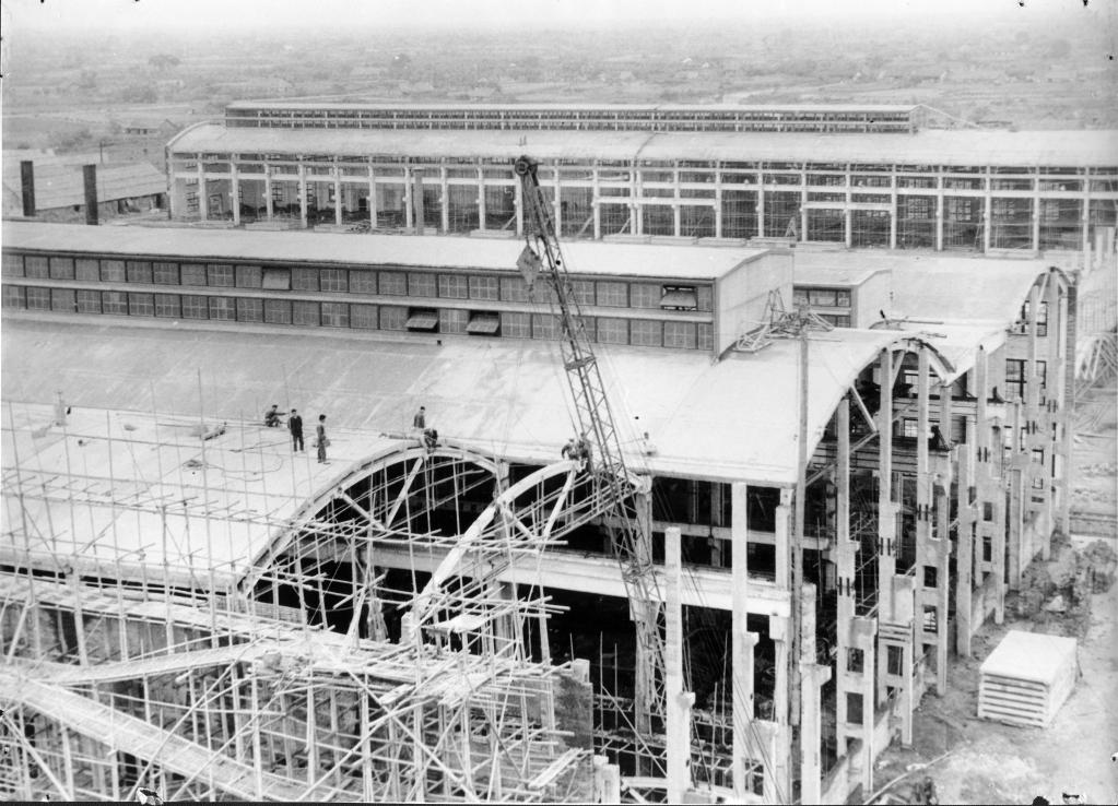 图为1959年正在建造中的杭氧东新路厂房。(受访单位供图)