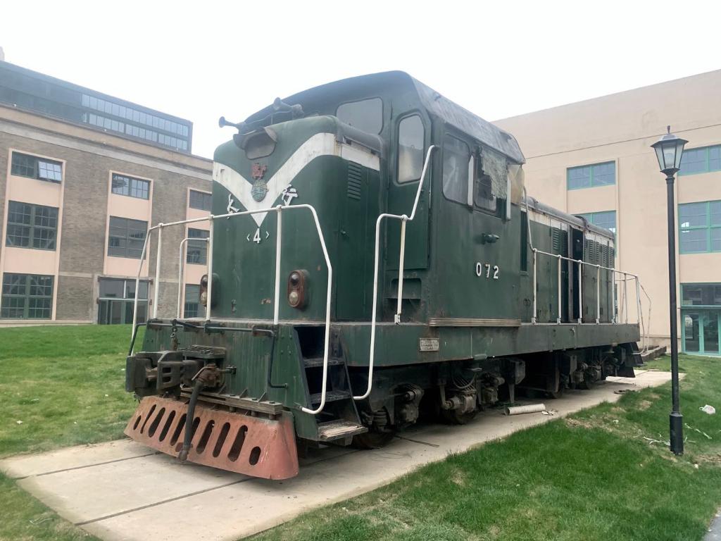 图为用于运送制氧设备的一辆老火车头,被保留在老厂房前。 新华社记者许舜达 摄