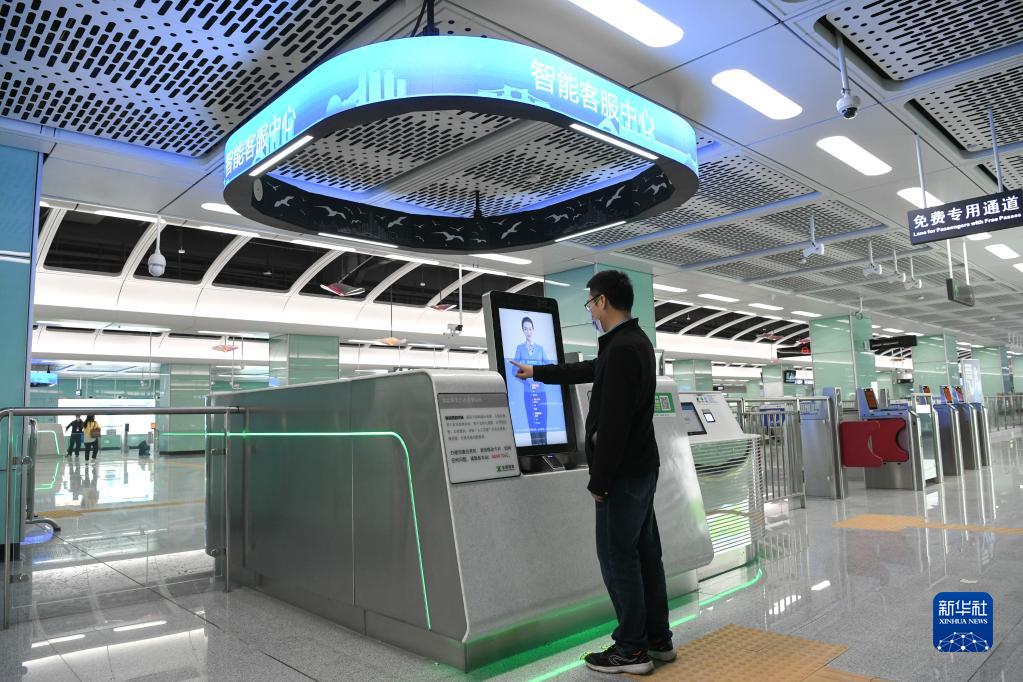 这是深圳地铁20号线站厅内的智能客服中心(12月28日摄)。