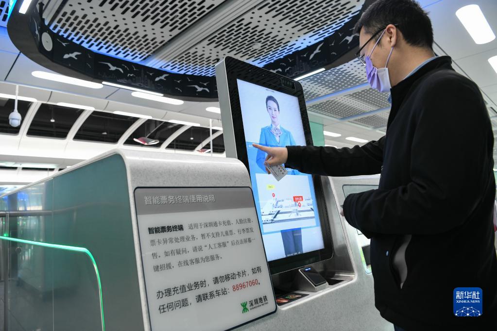 12月28日,在深圳地铁20号线站厅里,工作人员演示使用智能票务终端。
