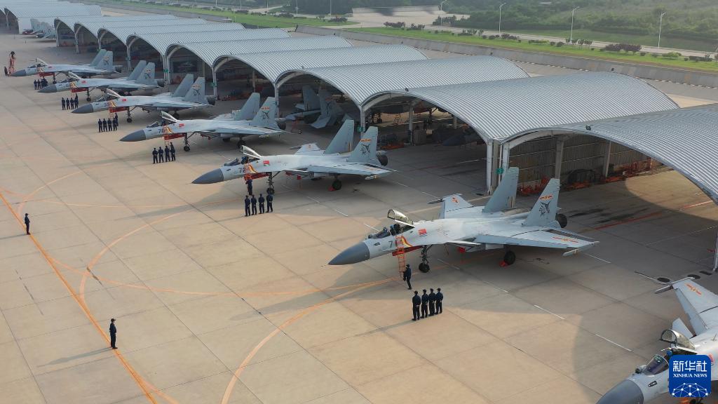 海军航空大学某基地组织昼间飞行训练,飞行教官们驾驶战机整装待发(视频截图)。新华社发(赵天淏 摄)