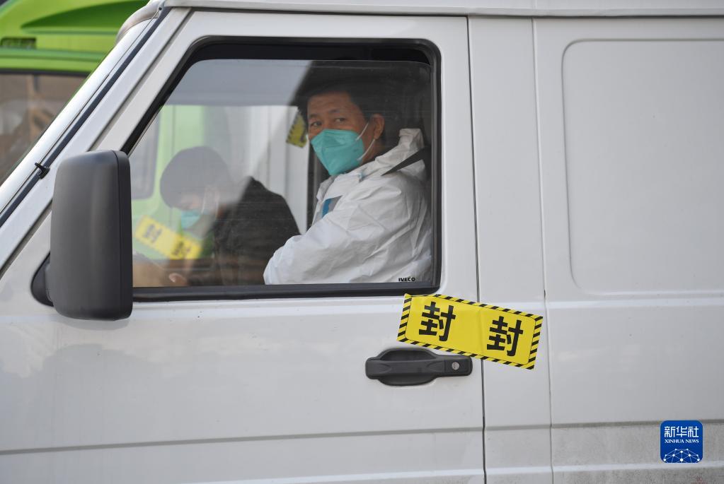 陕药集团派昂医药公司通过给社会运输车辆驾驶室贴封条的方式,避免进入园区的外部车辆人员感染园区(12月28日摄)。
