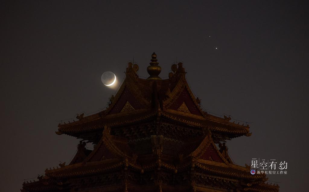 北京市天文爱好者郑志2020年12月17日在故宫角楼拍摄的“土木伴月”。(本人供图)
