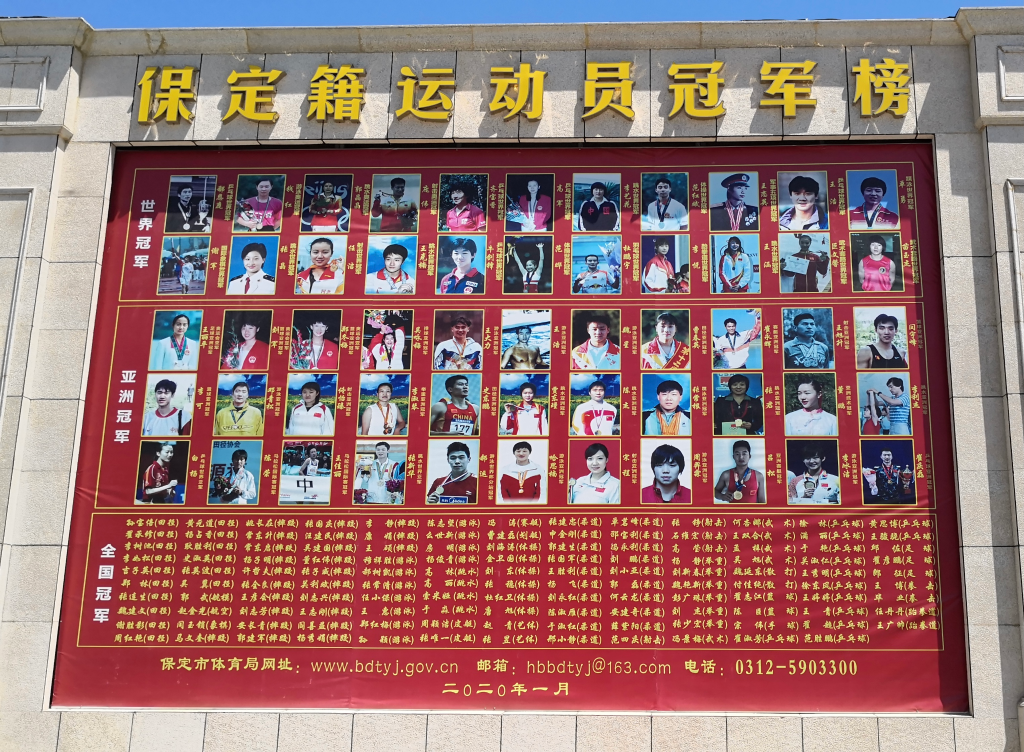 保定市体育局的门口 有一面“冠军墙”
