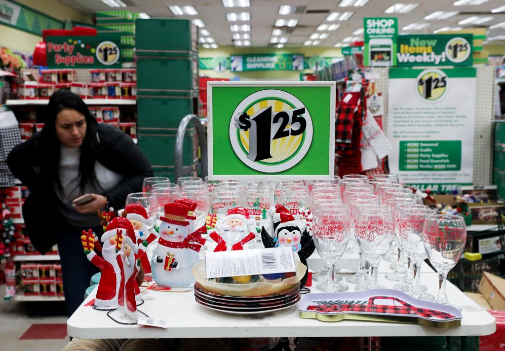 11月26日,顾客在美国纽约一家一元树折扣杂货店购物。(新华社记者王迎摄)