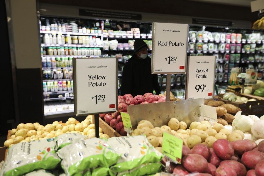 2021年12月7日,人们在美国纽约的一家超市购物。(新华社记者王迎摄)