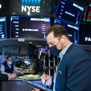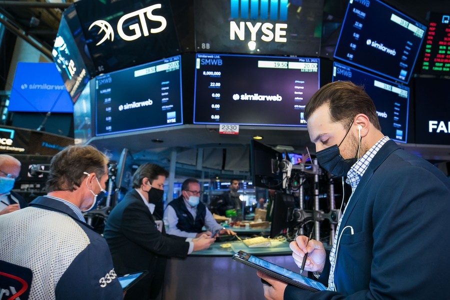 2021年5月12日,交易员在美国纽约证券交易所工作。(新华社发,纽交所供图)