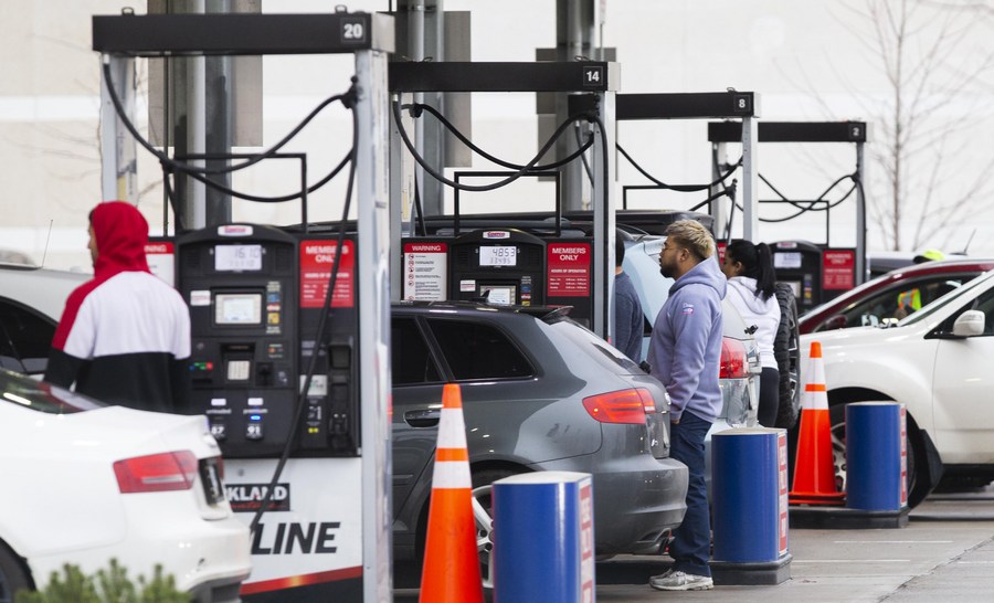 2021年11月17日,人们在加拿大安大略省米西索加一处加油站排队加油。(新华社发,邹峥摄)