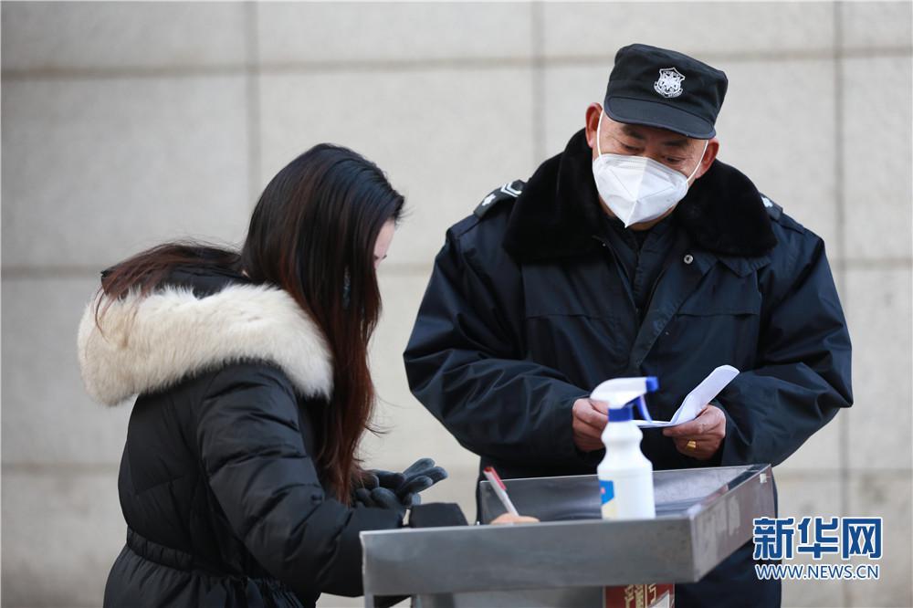 2022年1月1日清晨,西安市浐灞生态区一小区,工作人员正在要求需要外出工作的保障性企业职工进行登记。新华网 王智超摄
