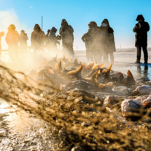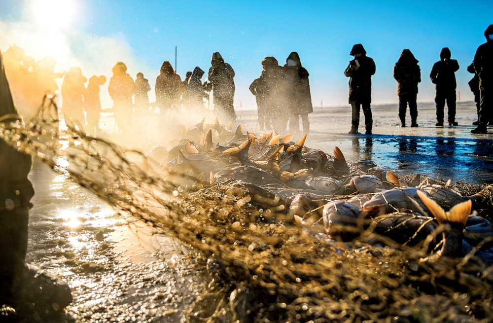 位于吉林松原的查干湖是我国十大淡水湖之一,这里是吉林河湖连通工程的核心,更以冬捕闻名全国。隆冬时节,冰面温度低至零下20℃,渔民们热火朝天地从湖水中拉出一网网鲜鱼。上岸的鱼儿迅速冰冻,再经分拣、包装,销往全国各地。每年冬捕季这里要捕捞鲜鱼近300万斤。