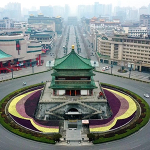 2021年12月23日拍摄的西安钟楼(无人机照片)新华社记者刘潇 摄