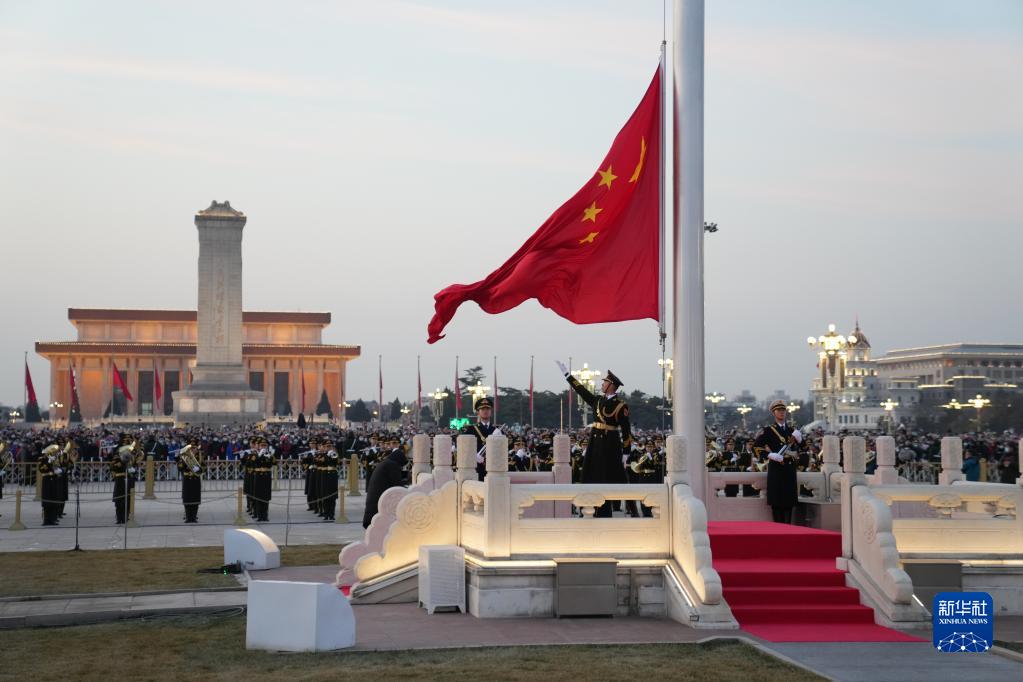 新华社北京1月1日电 题:向着国旗,向着未来——北京天安门广场元旦升旗仪式侧记