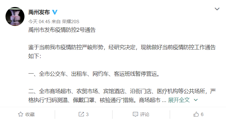一、全市公交车、出租车、网约车、客运班线暂停营运。