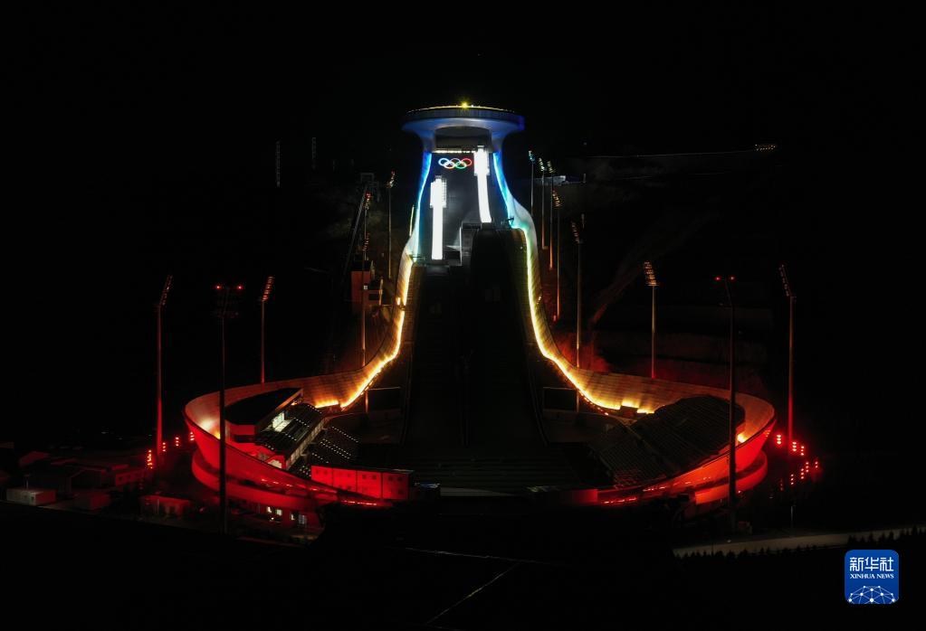 这是2021年10月23日摄拍摄的张家口赛区国家跳台滑雪中心(无人机照片)。