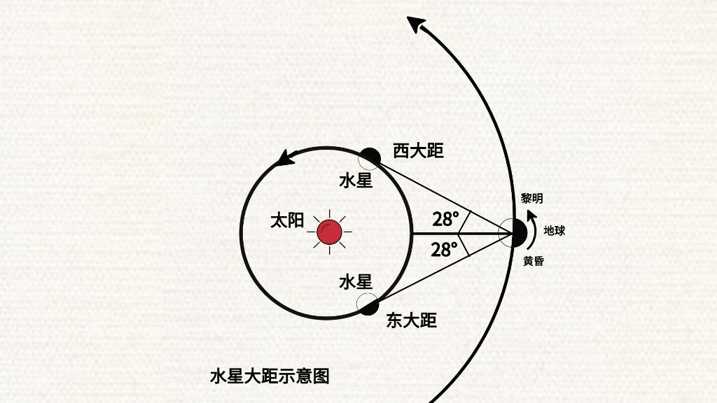 从地球上看去,水星和太阳之间最大的角距离为28度,我国古代把30度角称为“一辰”,因此水星也被叫作“辰星”。看到水星的时间一般不超过2个小时。每年至少会有6次、最多7次水星大距发生。
