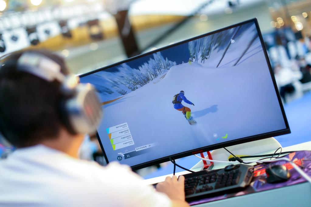 2020年9月27日,参加2020中国数字冰雪运动会广州站赛事的选手在启动仪式上进行电竞比赛。新华社发