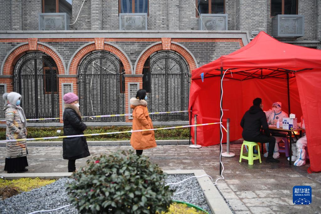 这是1月7日拍摄的郑州市金水区花园路街道办事处省银行社区核酸检测点。