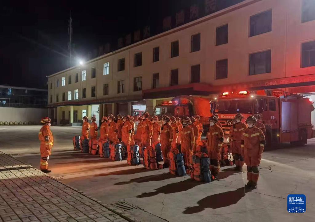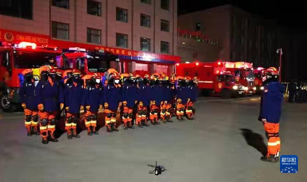 青海省海西蒙古族藏族自治州消防救援队员正在紧急集合(1月8日摄)。新华社发